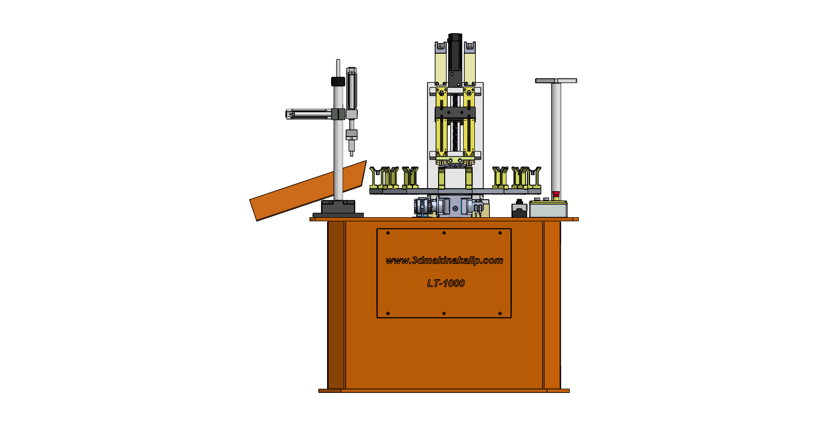 3D Makina Kalıp’ın ürettiği Dogalgaz kelepçesi lastik takma makinası LT-1000 modeli: Doğalgaz kelepçelerinin ses ve titreşim izatölörü olarak kullanılan ve bazı çeşitli hammaddelerden üretilen lastiğin kapak ve gövde üzerine takma işlemini yapan tam otomatik modelidir.Kompakt tasarımıyla LT-1000 doğalgaz kelepçesi üreticelerinin tercih sebebi olarak az yer ve hızlı çalışmasından kaynaklıdır.